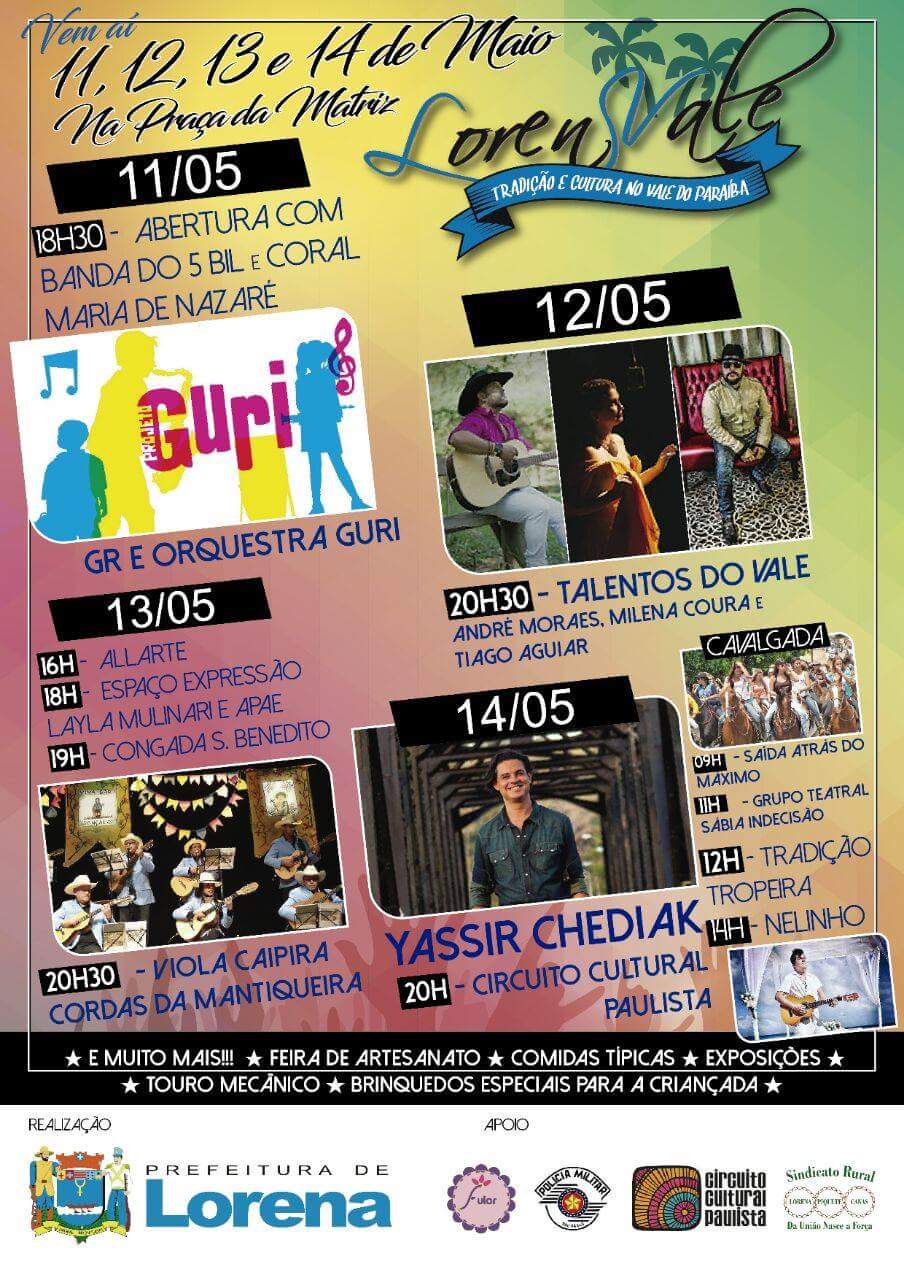 Maio promete ser um mês movimentado de atividades culturais na cidade. De 11 a 14 de maio (quinta a domingo), acontece a LorenVale, evento gratuito que vem numa nova versão neste ano. Além da variedade gastronômica oferecida, na próxima semana também acontecerão exposições, palestras e oficinas culturais.