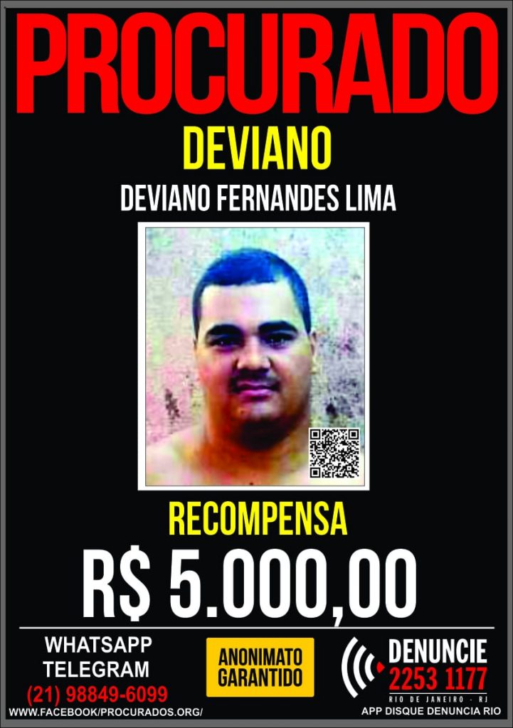 Pode estar na região um criminoso perigoso, procurado pela Polícia do Rio de Janeiro e de São Paulo. O Portal dos Procurados divulgou nesta quinta-feira, dia 6 de setembro, um cartaz com recompensa de R$ 5 mil por informações que levem à prisão de Deviano Fernandes Lima, vulgo “Cigano”, de 28 anos. Ele é o principal suspeito da morte do motorista de aplicativo Uber Sergio de Lima Dias Junior, de 32 anos, do Rio de Janeiro; e também do motorista de táxi José de Oliveira Santos, de 64 anos, de São Paulo. Ele já é considerado foragido da Justiça.