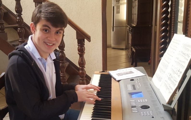 “Lembro que ele começou a tocar porque eu falei pra ele que ia voltar pro piano”, conta a mãe Luciana. “E no início, ele não gostava muito, porque tinha bastante teoria. Insisti pra ele ficar mais um pouquinho, até a apresentação de final de ano, e ele se apaixonou. Hoje, se deixar, ele toca o dia inteiro, de tanto que gosta”, completa.