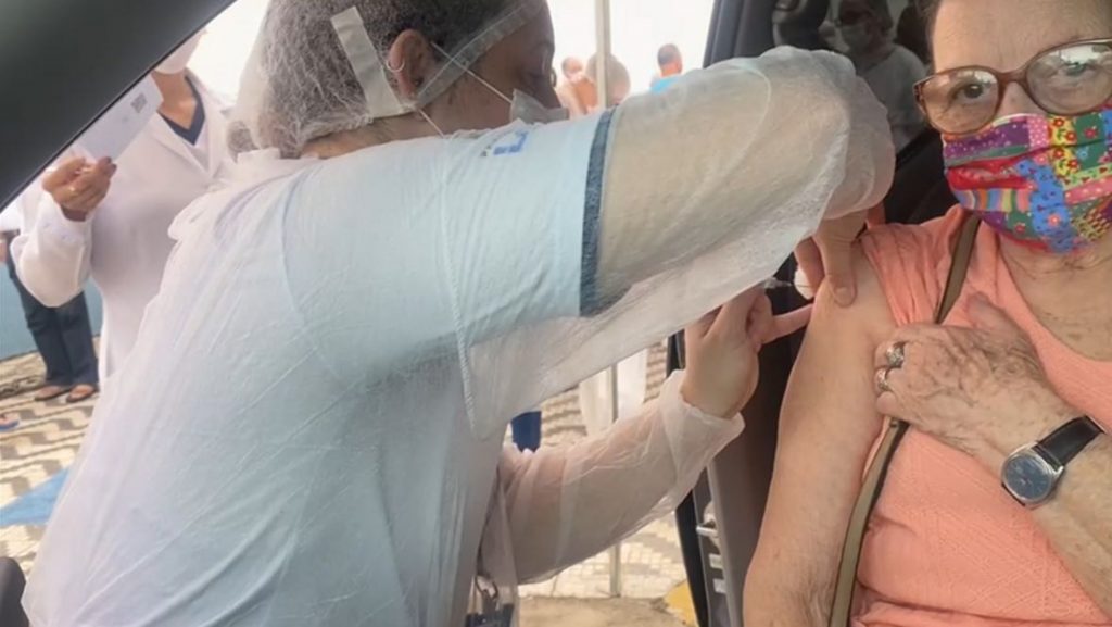 De acordo com a Prefeitura, no total, são 7406 doses recebidas até o momento. Dessas, 4545 já foram aplicadas. Entre elas, está a “Dona” Helena Barbosa, de 80 anos, que ilustra essa matéria. Moradora do Jardim Imperial, no bairro Olaria, “Dona” Helena tomou sua primeira dose no último sábado, 27 de fevereiro. O registro foi feito pelo seu filho, o advogado Jairo Barbosa.