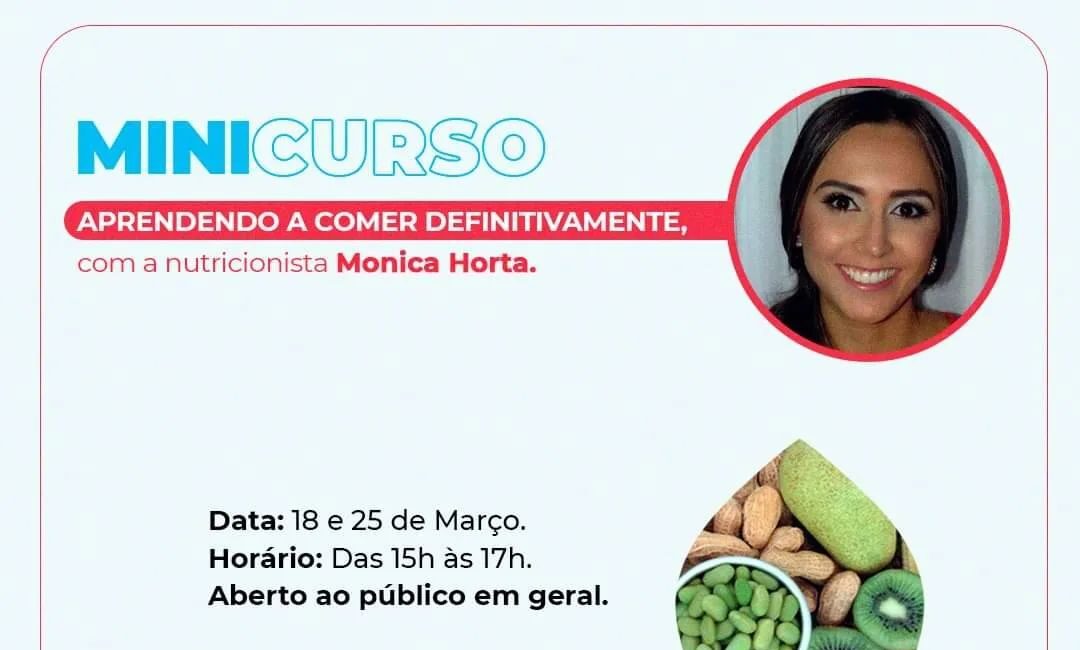 Oportunidade de aprendizado gratuito com uma profissional sensacional! Nos dias 18 e 25 de março, a nutricionista Mônica Horta ministrará um minicurso sobre educação alimentar no auditório da Santa Casa de Lorena. Serão duas turmas independentes a cada dia.