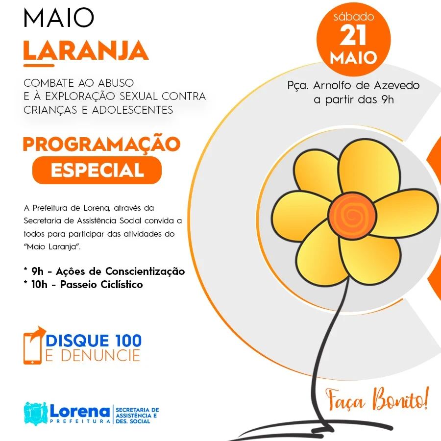 Neste sábado, 21 de maio, a Secretaria de Assistência e Desenvolvimento Social realiza atividades na Praça Arnolfo Azevedo, relativas ao Maio Laranja, contra o abuso e a exploração sexual de crianças e adolescentes.