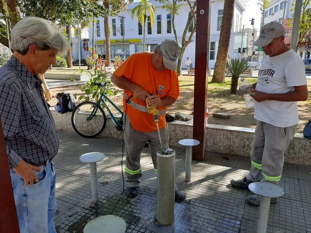 Nesta semana, a Secretaria de Serviços Municipais está fazendo reparos na Praça Arnolfo Azevedo. Há alguns dias, este Portal de Notícias postou registros de destruição do patrimônio público no local (fotos enviadas pelo @josenicodemos) e que havíamos solicitado posicionamento oficial da Prefeitura, a respeito da situação.
