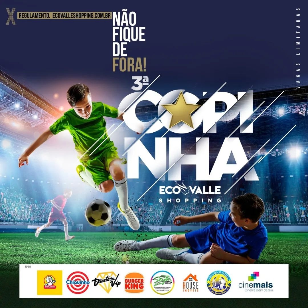 3ª Copinha Eco Valle: está quase na hora de entrar em campo! É nesse final de semana, nos dias 9 e 10 de julho, no Eco Valle Shopping. Reúna seu time, faça a inscrição gratuita e participe!