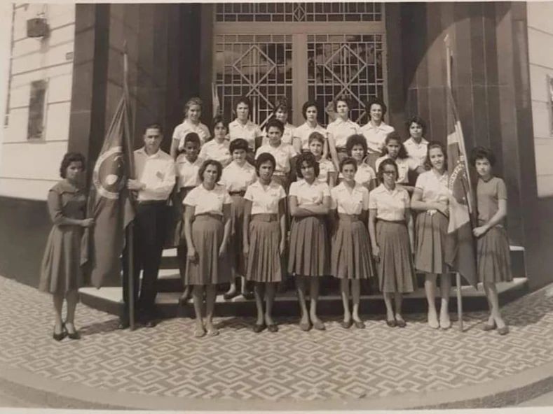 “Nas bandeiras, a saudosa professora Nair, esposa do Joel da Farmácia. Do lado esquerdo da bandeira, a querida e saudosa mãe do Julio Mira com as amigas, que compartilhou conosco essa lembrança”…