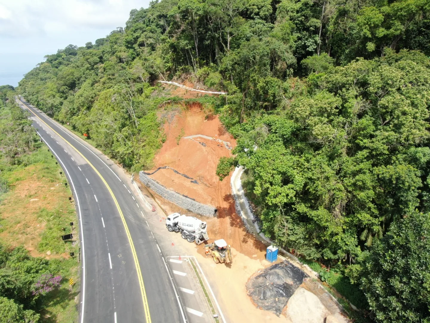 As equipes de engenharia e de obras da Concessionária CCR RioSP devem concluir até o fim desse mês os trabalhos de recuperação definitiva do talude que cedeu no km 1,200 da pista sentido São Paulo da BR-101 (Rio-Santos), em Ubatuba. O local é um dos 450 pontos atingidos por uma forte chuva, em abril do ano passado.