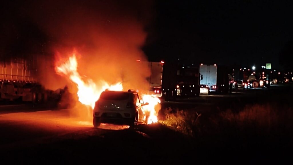 Segundo consta, um carro bateu na traseira de outro veículo, iniciando o incêndio. Houve congestionamento, mas ninguém ficou ferido.