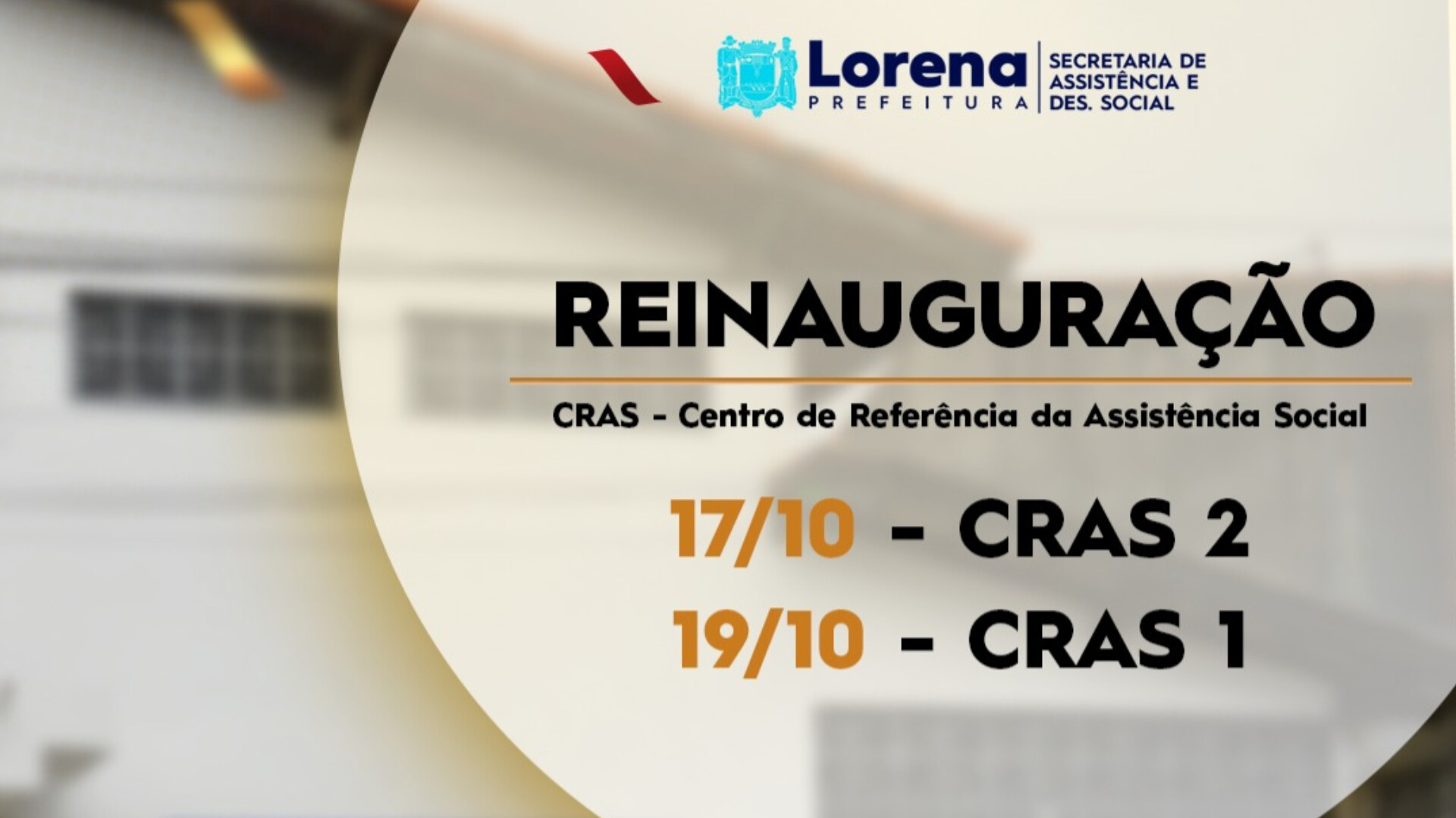 A Prefeitura de Lorena vai reinaugurar, nesta semana, os Centros de Referência da Assistência Social 1 e 2, que passam a funcionar em novos endereços.