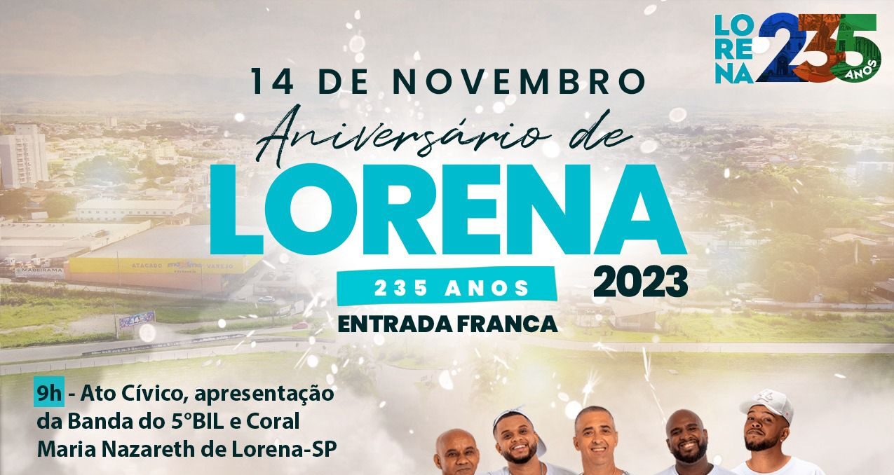 Em 14 de novembro de 2023, Lorena celebra seus 235 anos de emancipação política. Para comemorar mais esse aniversário, a Prefeitura de Lorena, por meio da Secretaria de Cultura, preparou uma programação recheada de atrações na Praça Arnolfo Azevedo.