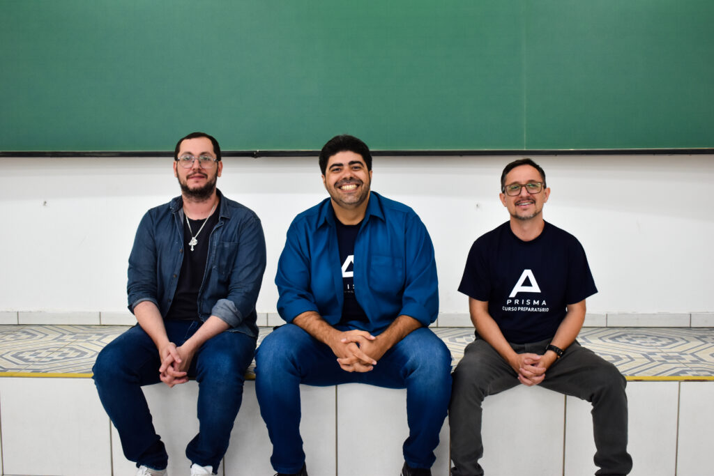 O que os três professores dessa foto têm em comum? Eles compartilham um sonho e um objetivo: transformar a realidade dos jovens, oferecendo uma preparação de qualidade para o ingresso no Ensino Médio técnico. Ronaldo, Josias e Rodolfo uniram sua experiência profissional à paixão por ensinar e fazer a diferença na vida dos alunos. Assim nasceu o Curso Prisma, em Guaratinguetá, há dois anos, com material próprio, atualizado e focado nas necessidades dos estudantes. Agora, o Prisma está chegando a Lorena.