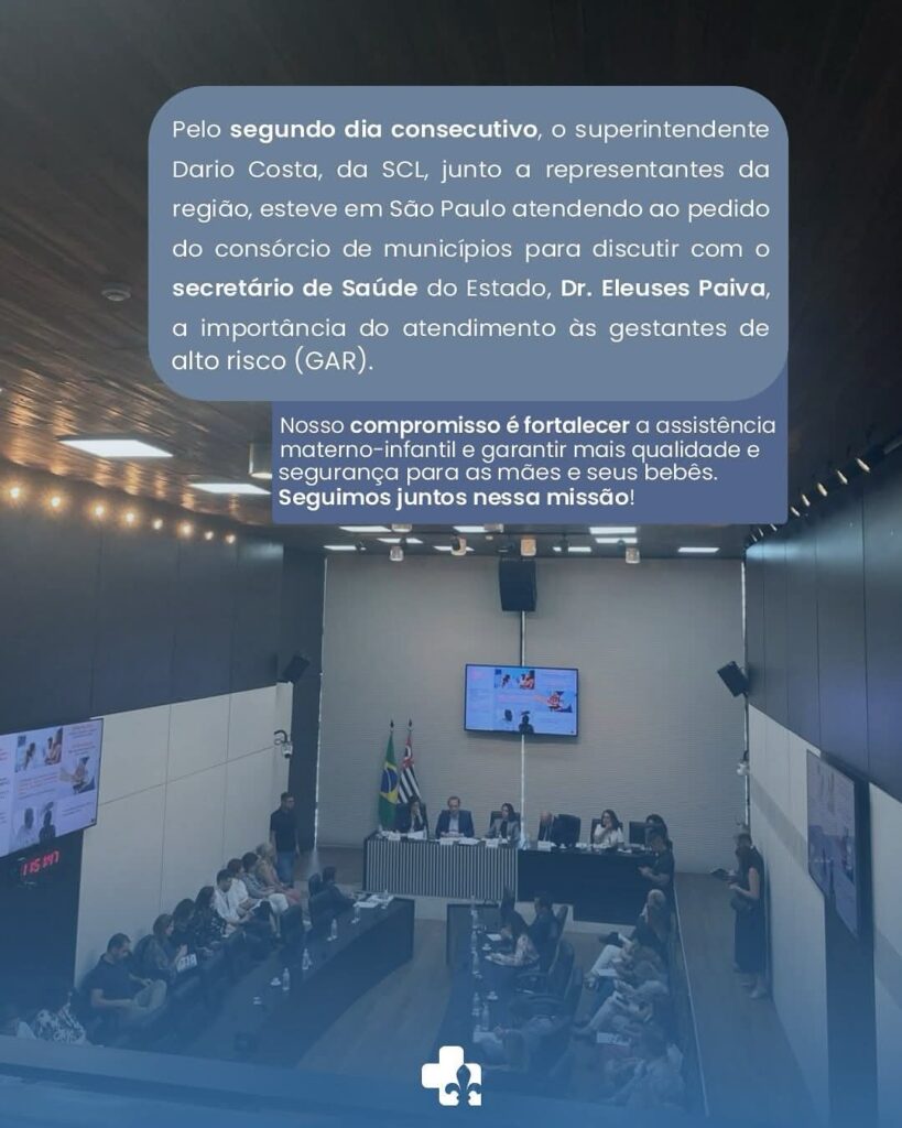 Pelo segundo dia consecutivo, o superintendente Dario Costa, da @santacasadelorena, junto a representantes da região, esteve em São Paulo, atendendo ao pedido do consórcio de municípios para discutir com o secretário de Saúde do Estado, Dr. Eleuses Paiva, a importância do atendimento às gestantes de alto risco (GAR).