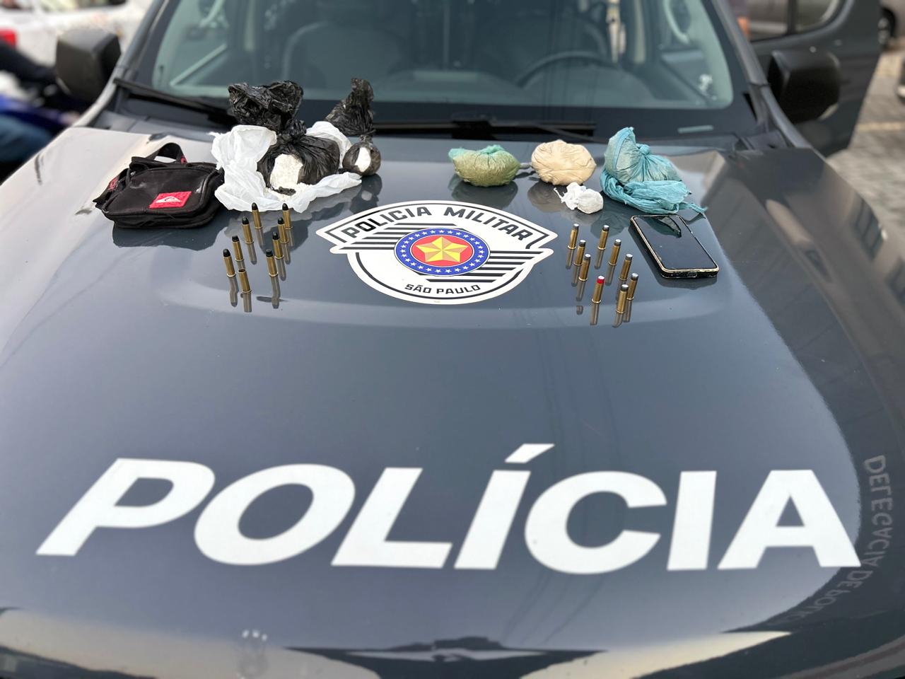 Em Lorena, o BAEP prendeu um criminoso na Vila dos Comerciários, com 18 munições calibre .38 e insumos para preparo de drogas.