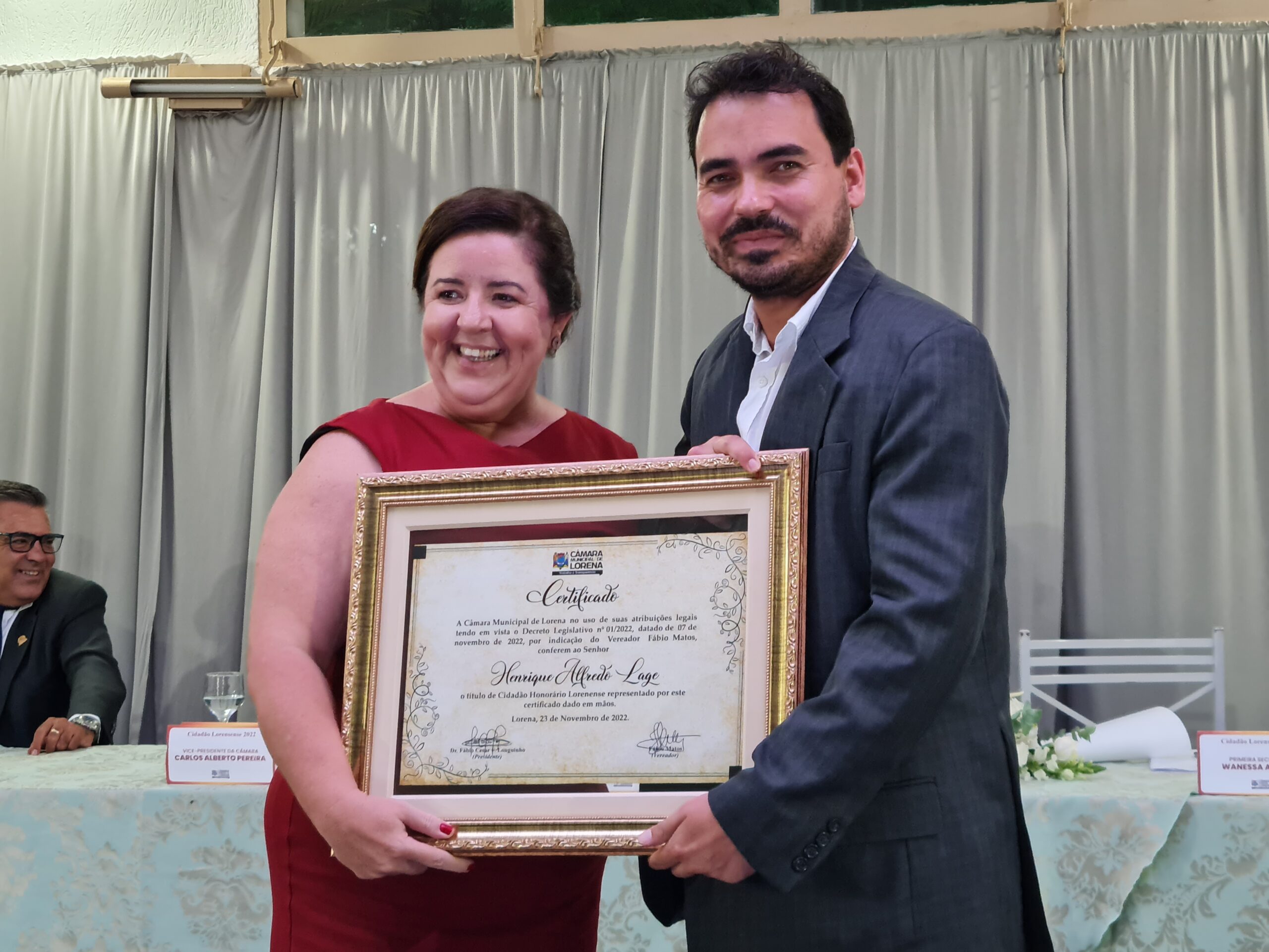 Por tanta humanidade e por realmente fazer a diferença na vida da comunidade lorenense, que adotou como sua, dr. Henrique Laje recebeu o título de Cidadão Honorário Lorenense. Por estar em um Congresso, ele não pôde estar presente. A vereadora Wanessa Andrea recebeu, simbolicamente.