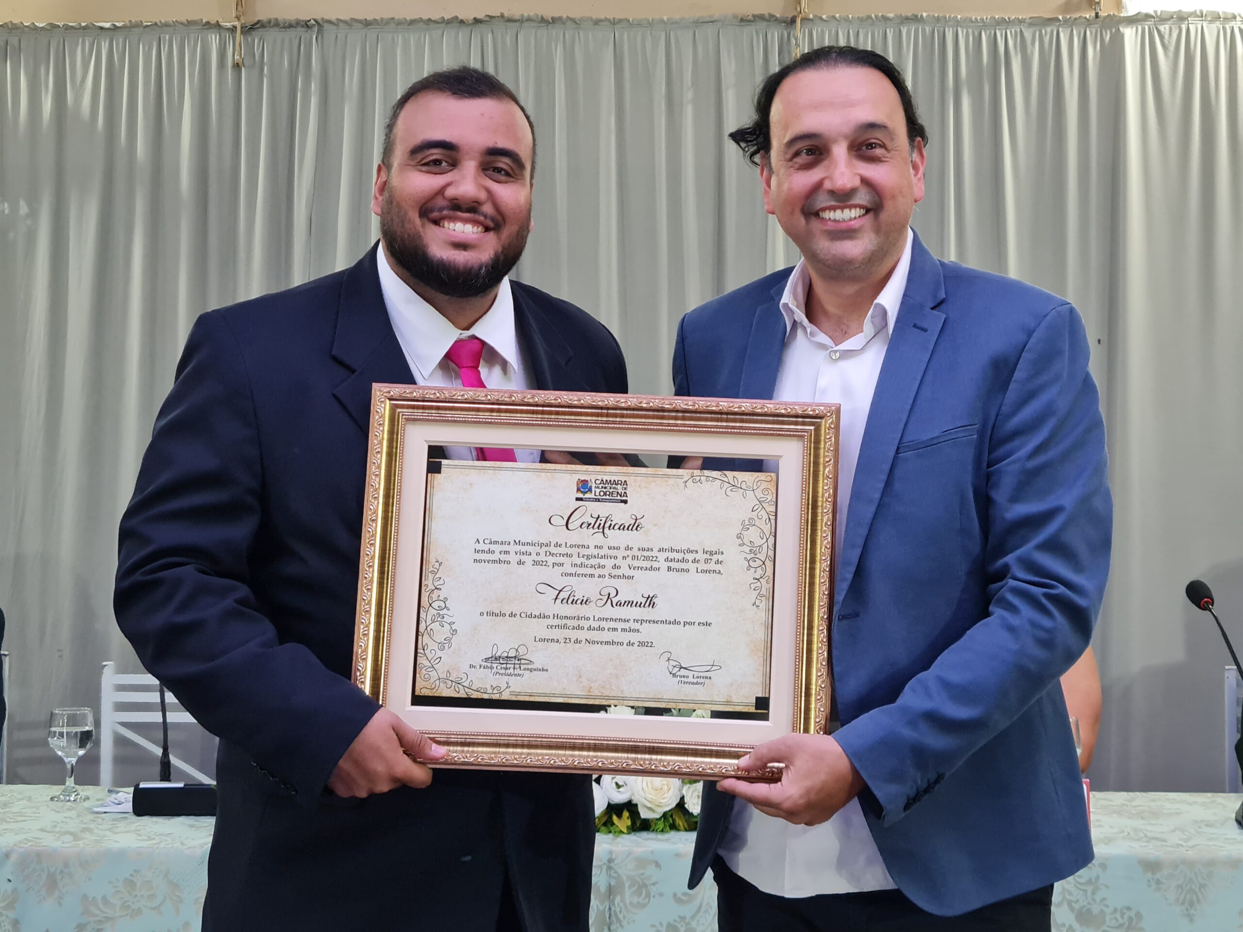 Foi na noite de quarta-feira, 23 de novembro, a solenidade anual de entrega dos títulos de Cidadania Honorária Lorenense, realizada pela Câmara Municipal, no Clube Comercial. A honraria é concedida a pessoas que não nasceram em Lorena, mas contribuíram ou contribuem, de alguma forma, na construção da história e desenvolvimento da cidade.